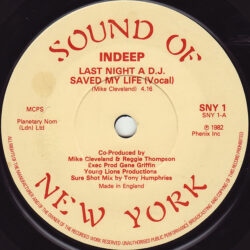 Indeep – Last Night a D.J. Saved My Life (7″ Single) 1982 Sound Of New York SNY 1, uk 6/G