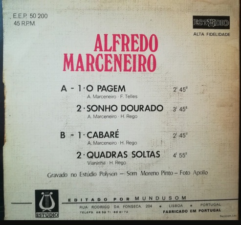 Alfredo Marceneiro – Alfredo Marceneiro e o Fado (7″ EP) Estúdio EEP 50200 pt 5/5
