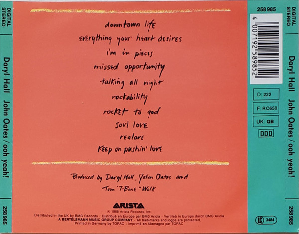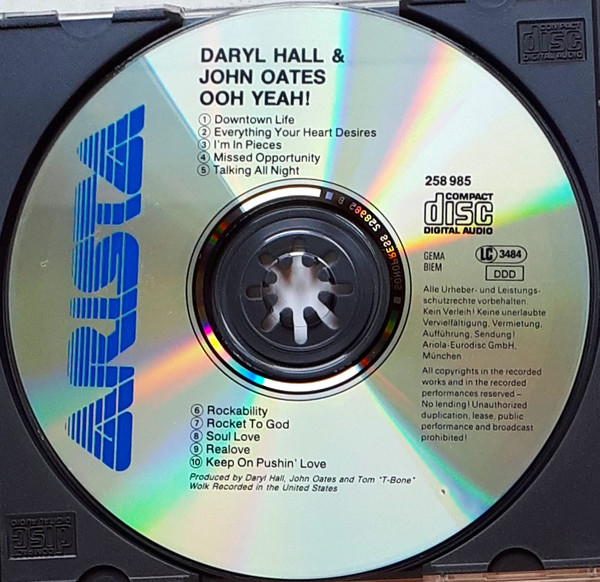 Daryl Hall John Oates – Ooh Yeah! (CD) 1988 Arista 258985 eu 7/7