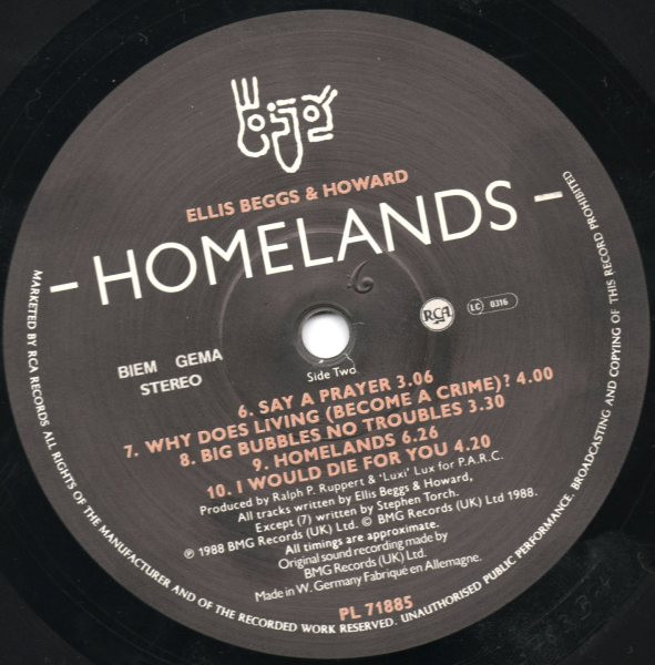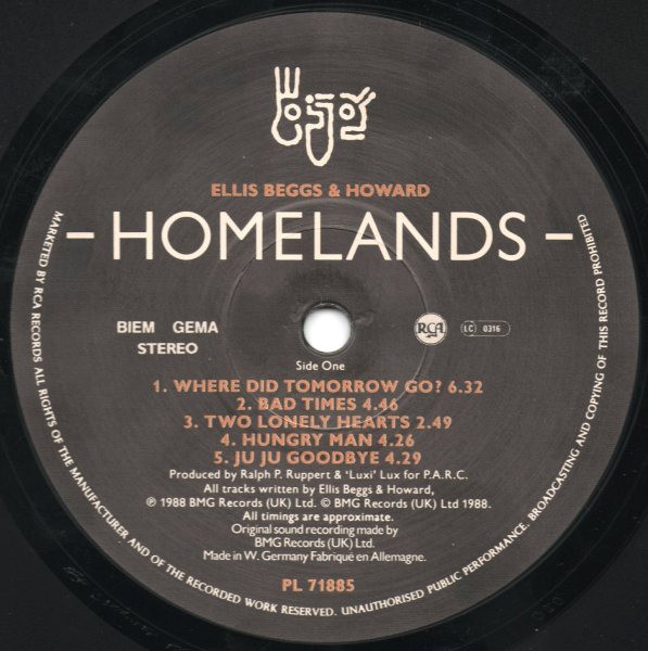 Ellis Beggs & Howard – Homelands (vinyl) 1988 RCA PL71885 uk 6/6