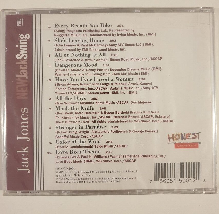 Jack Jones – New Jack Swing (CD) 1997 Honest/Linn Records HON CD 5001 usa 8/8 Smooth Jazz