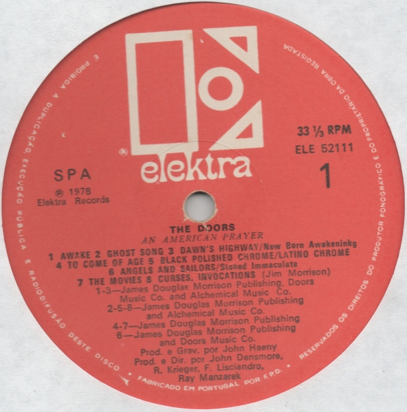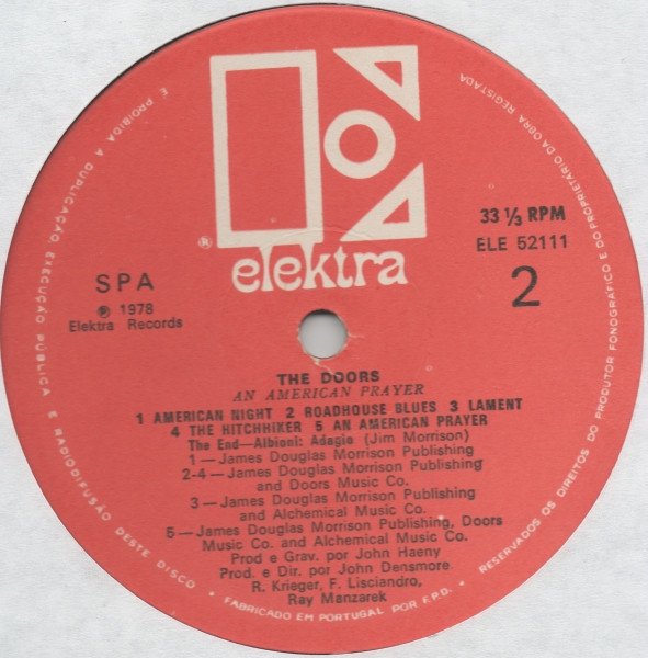 Jim Morrison Music By The Doors – An American Prayer (vinyl) 1978 Elektra 52111 pt 7/7