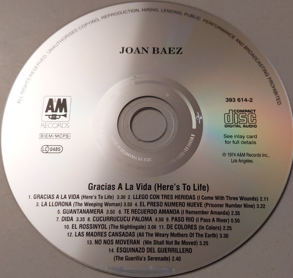 Joan Baez – Here’s to Live/gracias a la vida (cd) 1974/1999 A&M 393614-2 ger 6/7