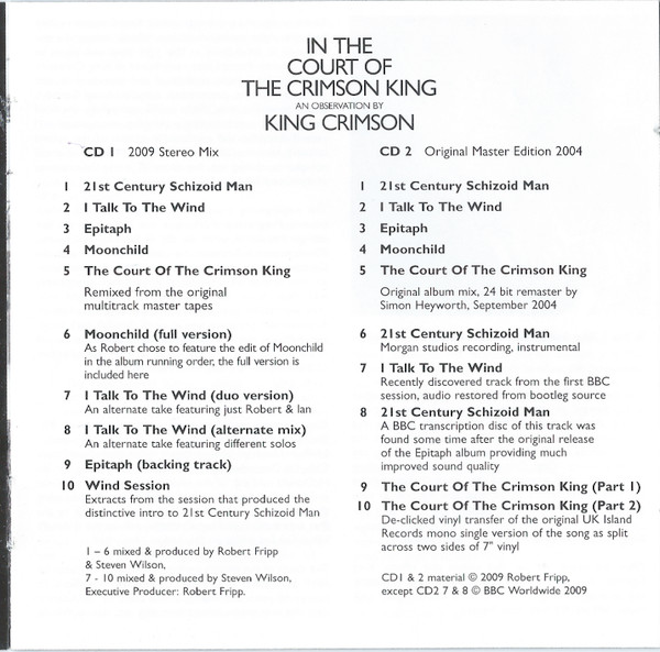King crimson – in the court of Crimson King an observation by (2CD) 1969/2009 Discipline G.M. DGM5009_eu_7/7