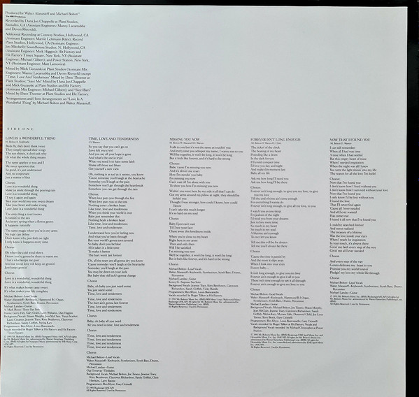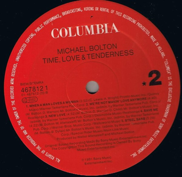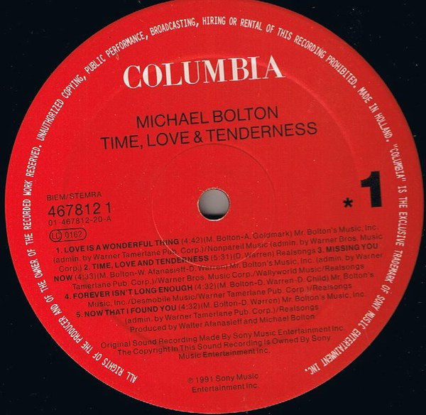 Michael Bolton – Time, Love & Tenderness (vinyl) 1991 Columbia COL 4678121 eu 7/7