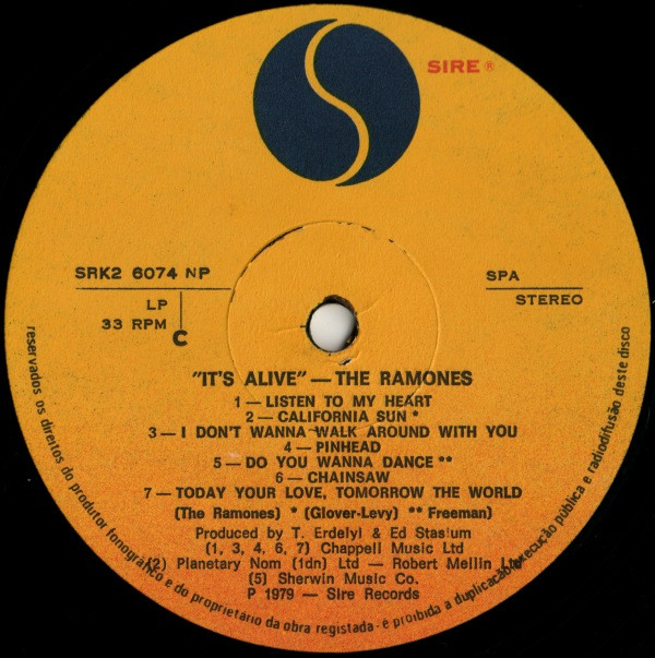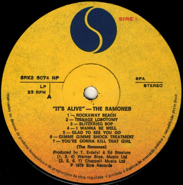 Ramones – It’s Alive (2x vinyl) Gatefold 1979 Sire SRK2 6074 pt 7/6