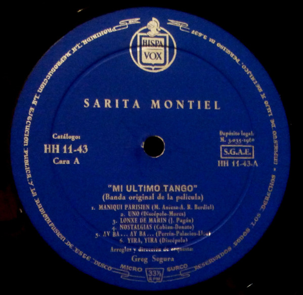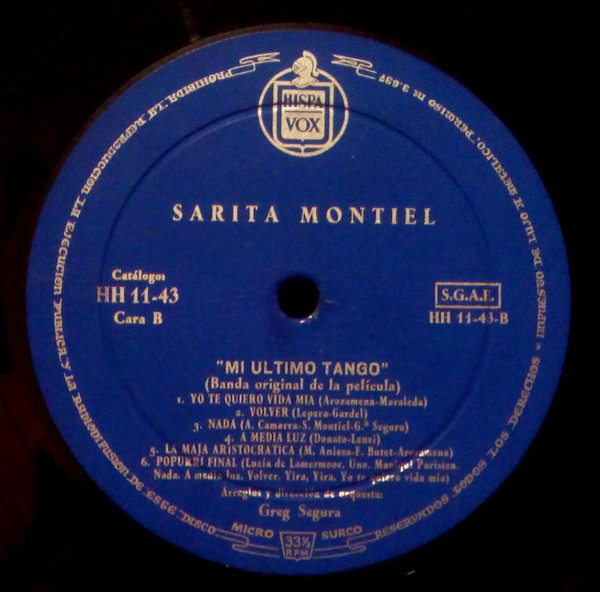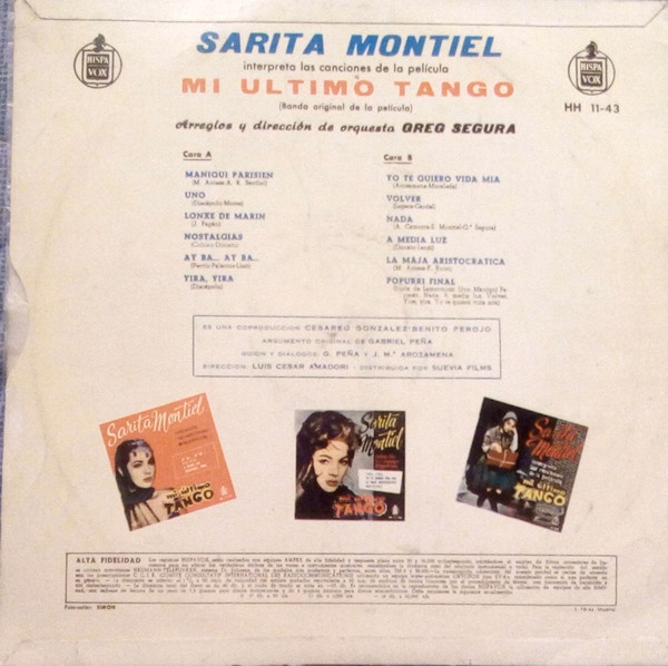 Sara Montiel – Mi Ultimo Tango (Banda Original De La Pelicula) (vinyl) 1960 Hispavox HH11-43 es 6/6