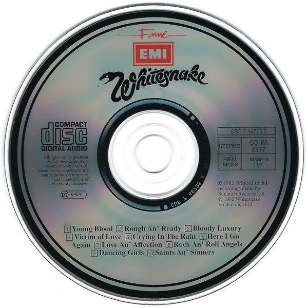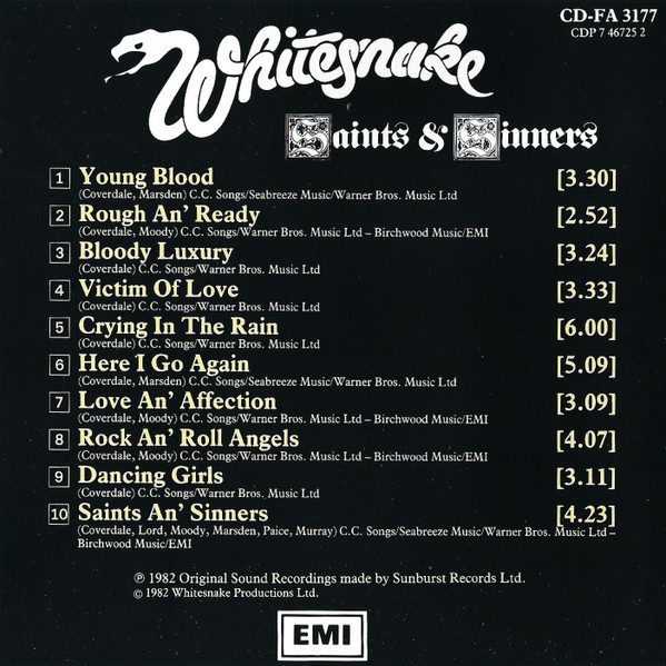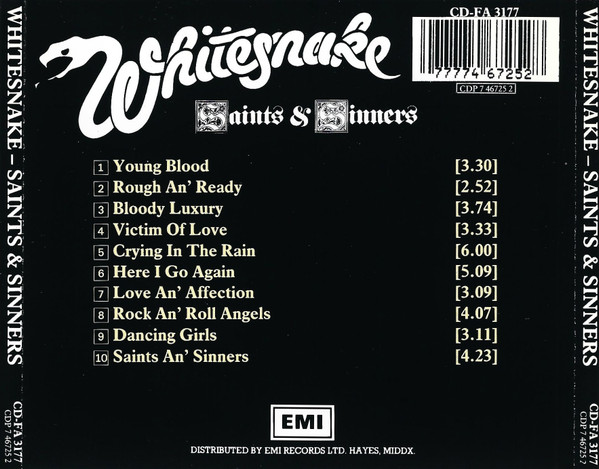 Whitesnake – Saints & Sinners (cd) 1982/1988 EMI Fame CDP 7467252 UK 5/6
